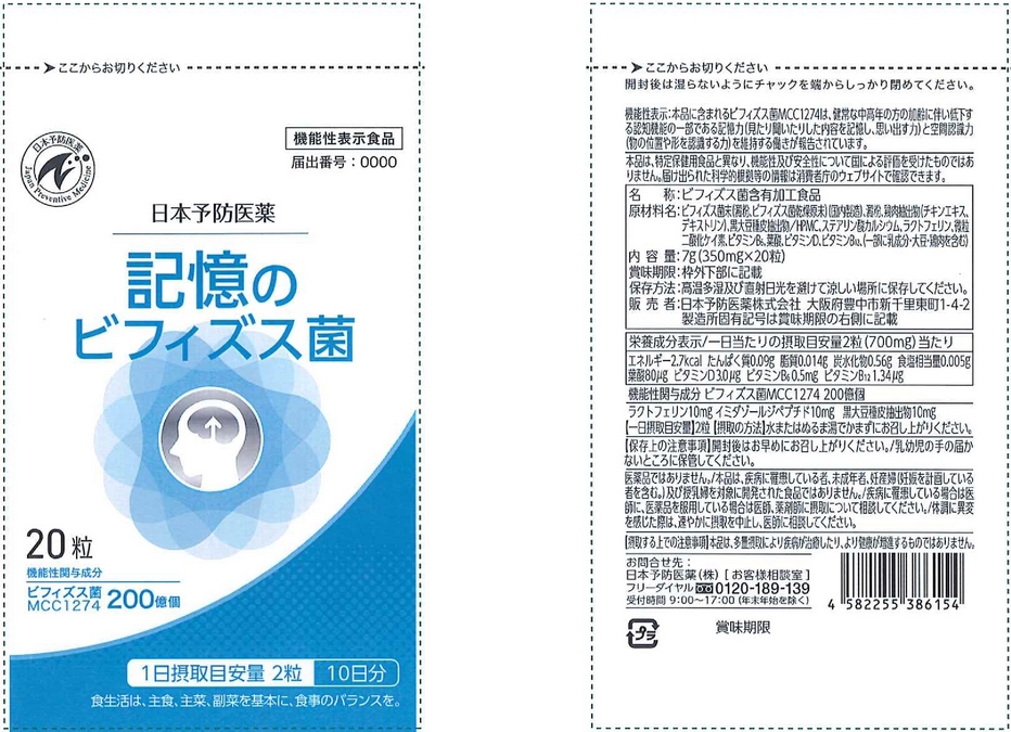 | 一日当たりの摂取目安量当たりの機能性関与成分の含有量 | 機能性関与成分名:ビフィズス菌BB536 含有量:20億個 |