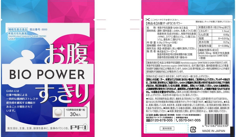 当該食品は機能性関与成分GABAを一日摂取目安量あたり100mg配合した打錠形状の加工食品である。