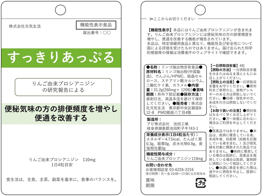 | 機能性関与成分名 | りんご由来プロシアニジン |