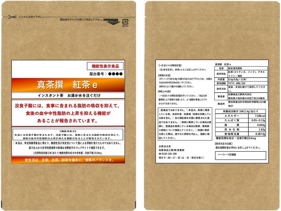 | 表示しようとする機能性 | 本品には、ターミナリアベリリカ由来没食子酸が含まれます。ターミナリアベリリカ由来没食子酸には、食事の脂肪や糖の吸収を抑え、食後の中性脂肪や血糖値の上昇をおだやかにする機能、肥満気味な方のお腹の脂肪(内臓脂肪と皮下脂肪)とBMIを減らすのを助ける機能が報告されています。 |