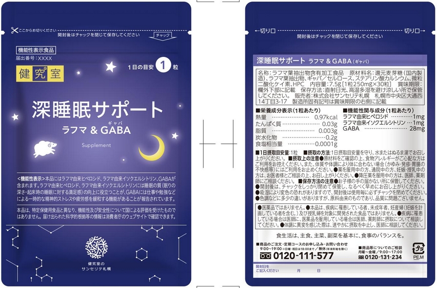 | 表示しようとする機能性 | 本品にはラフマ由来ヒペロシド、ラフマ由来イソクエルシトリンと有胞子性乳酸菌(Weizmannia coagulans SANK70258)が含まれます。ラフマ由来ヒペロシド、ラフマ由来イソクエルシトリンには睡眠の質(眠りの深さ・起床時の睡眠に対する満足感)の向上に役立つ機能、日常生活における精神的ストレスをやわらげる機能や、日中の眠気をやわらげる機能が報告されています。有胞子性乳酸菌(W. coagulans SANK70258)は、生きて腸まで届き、腸内環境を整えることで便通を改善する機能が報告されています。 |