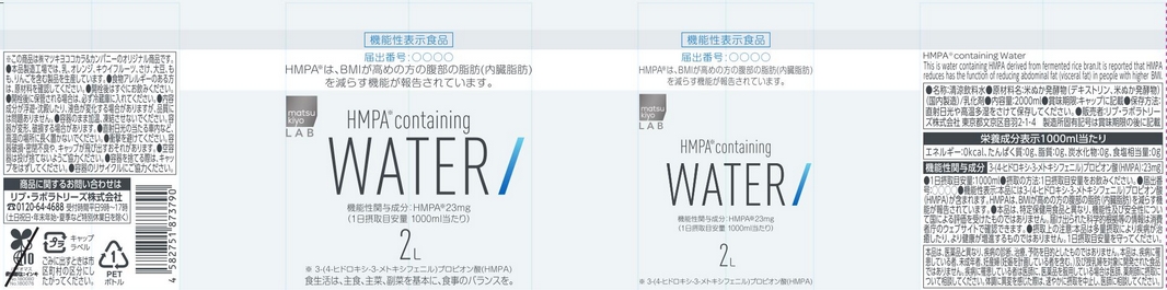 表示しようとする機能性 本品には3-(4-ヒドロキシ-3-メトキシフェニル)プロピオン酸(HMPA)が含まれます。HMPAは、BMIが高めの方の腹部の脂肪(内臓脂肪)とウエスト周囲径を減らす機能が報告されています。また、食後血糖値が高めの方の食後に上昇した血糖値を下げる機能が報告されています。