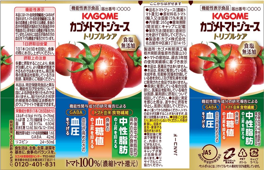 | 表示しようとする機能性 | 本品に含まれるGABAには、以下の機能があることが報告されています。 ①血圧が高めの方の血圧を低下させる。 ②事務作業などによる一時的な精神的ストレスや疲労感を緩和する。 ③睡眠の質(眠りの深さ)の改善に役立つ。 |